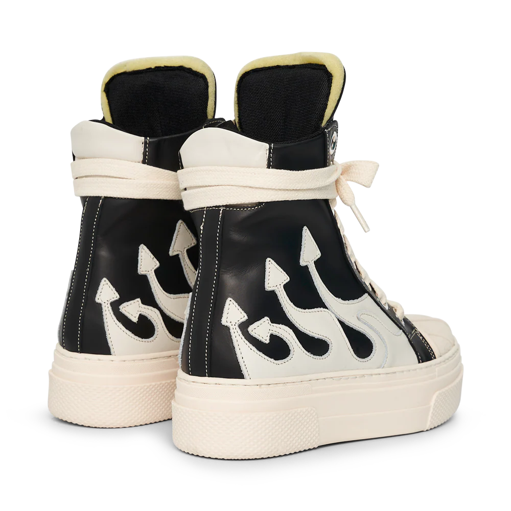These shoes feature a stunning combination of black details and white flames, making them the perfect addition to any outfit. With their superior design and quality materials, you will look your best in these gorgeous shoes.