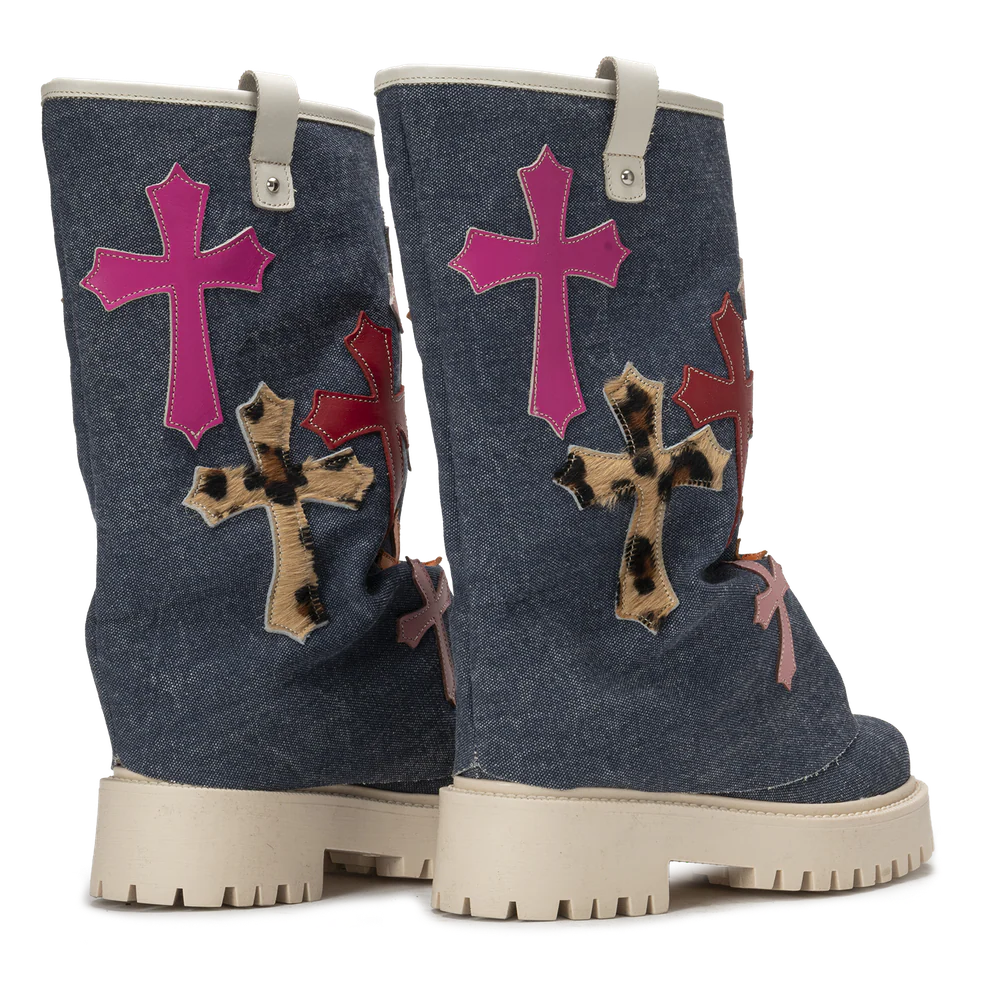 Elevate your style with Chunky Cross Denim! This unique piece features a chunky cross design, adding a touch of edginess to any outfit. Made with high-quality denim, it's durable and stylish.